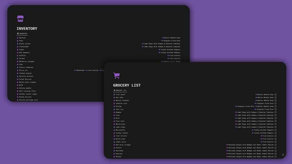 • Auto-generate weekly grocery lists